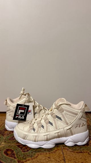 Zapatillas de la marca Fila en tonos beige y blanco. Incluyen cordones extra. - Diseño de caña alta. - Logo de Fila en la lengüeta y lateral. Me las he comprado y no me gustan como me quedan.