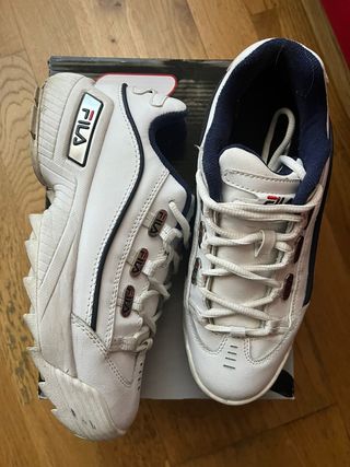 Vendo zapatillas FILA blancas, talla 36. Están en buen estado, aunque muestran señales normales de uso. Son muy cómodas. - Ideales para el día a día. - Perfectas para un look casual.