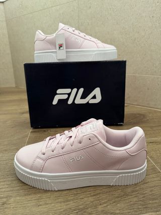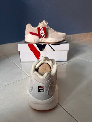 Bambas Marca Fila puestas TRES veces, me van algo justas por eso no me las he puesto casi. El color cambia un poco en las fotos, en persona es como un tono moradito/marrón . Son muy cómodas, Talla 40.