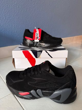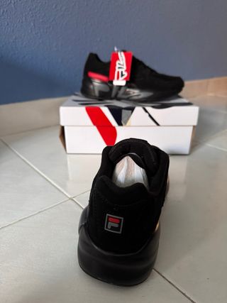 Zapatillas deportivas Fila en color negro. Perfectas para el día a día.solo tiene unas usada estado guardada el precio se puede ajustar . - Cierre con cordones. - Detalle brillante en el talón.