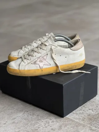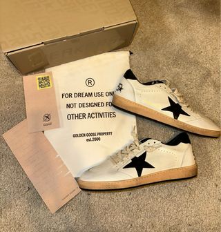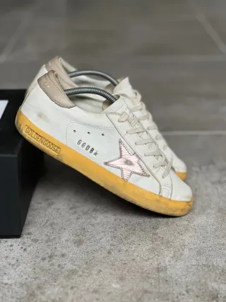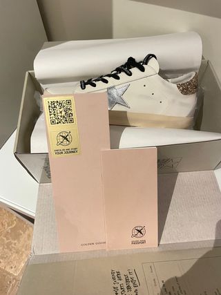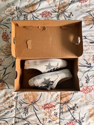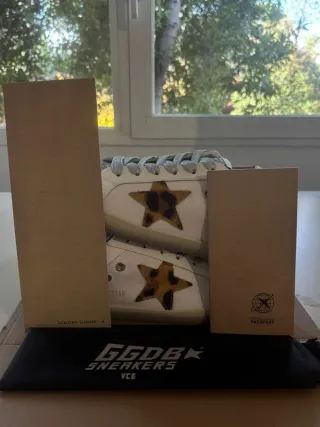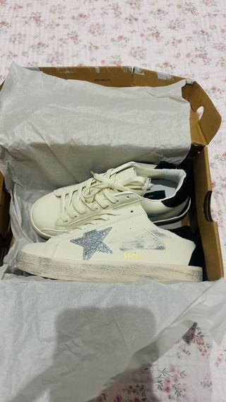 Zapatillas Golden Goose compradas en tienda en Madrid. - Modelo con estrella negra. - Diseño desgastado característico de la marca. - Comprados el 28 de Agosto 2025 uso de 3 meses - Incluye bolsa de tela golden goose bolsa de papel golden goose - pasaporte Golden - ticket original de compra
