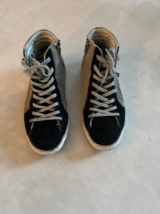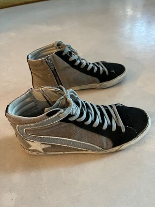 Zapatillas altas Golden Goose en muy buen estado. - Diseño bicolor en negro y beigue - Cierre con cordones y cremallera lateral. - Suela de goma. - Detalle de logo en la lengüeta. Vendo porque no las uso. Las use muy pocas veces.