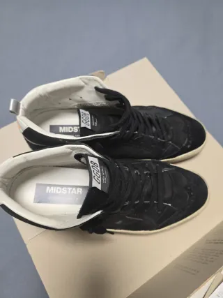 💕 Zapatillas Golden Goose Mid Star bota completamente originales. Suela plata - Talla 38 - Condición 9'75/10, como nuevas - Sin caja, se envían en otra bien protegido - Precio en tienda 490€ 📦🤝🏻 Puedo quedar en mano en Madrid o envío por Wallapop Golden goose estrella superstar piel ante ballstar ball star mid star og bota stardan cordones laces blazer vintage spezial samba retro miu miu longchamp zadig isabel marant barbour scalpers chaqueta vestido castellanos zapatos wayfarer 38 39 40 41 42 43 air force baratas running campo carretera tenis scuffers eme studios cold culture regalo nuevas hoff sebago 530 blanco negro g