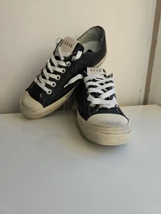 Zapatillas de estilo casual con un diseño único. - Detalle de estrella plateada en el lateral. - Acabado desgastado en la suela. - Cierre de cordones.