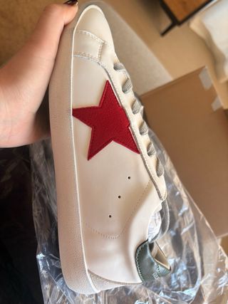 Zapatillas Golden Goose Superstar completamente originales - Talla 37 - 100% originales - Sin estrenar con caja y bolsa Golden - Exclusivas 250 pares - Precio en tienda 490€ 📦🤝🏻 Puedo quedar en mano en Madrid o envío por Wallapop Golden goose estrella superstar piel ante ballstar ball star mid star og bota stardan cordones laces blazer vintage spezial samba retro miu miu longchamp zadig isabel marant barbour scalpers chaqueta vestido castellanos zapatos wayfarer 38 39 40 41 42 43 air force baratas running campo carretera tenis scuffers eme studios cold culture regalo nuevas hoff sebago 530 blanco negro gris azul rosa n