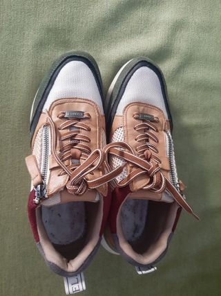 Zapatillas con detalles en piel verde, marrón y granate. muy cómodas y casi nuevas