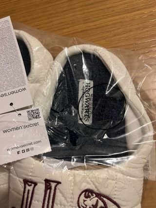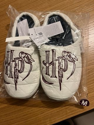 Zapatillas de estar en casa de Harry Porter marca Women’secret Zapatillas en blanco con los detalles en granate, con el interior de pelito suave en azul oscuro Talla M, que equivale a un 38-39 Sin estrenar