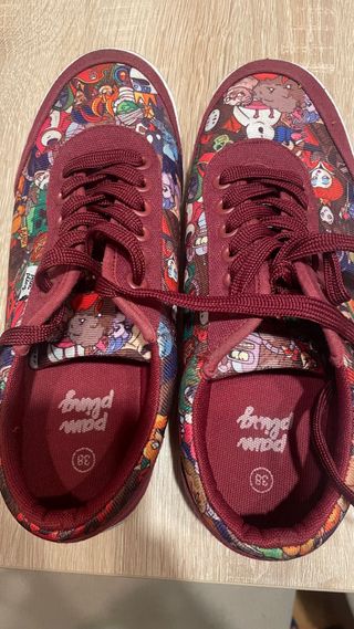 Zapatillas Pampling con diseño de personajes malvados. Son de color granate y talla 38. Están en buen estado, apenas usadas. No se hacen envios