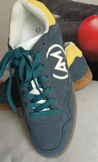Zapatillas deportivas Munich con un diseño moderno y cómodo. - Combinación de malla y ante. - Detalle de logo en la lengüeta. - Cordones blancos. Vendo porque me quedan pequeñas, son talla 43 pero recomiendo que tengas una talla 42 para evitar que te vayan justas como a mi. Probadas en casa dos veces pero me aprietan. Nuevas 70€