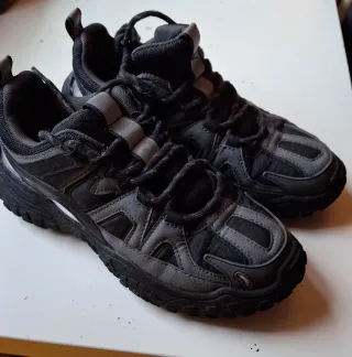 Zapatillas de montaña diseñadas para senderismo y actividades al aire libre. - Material exterior de malla transpirable. - Refuerzos sintéticos para mayor durabilidad. - Suela de goma para un buen agarre. - Cierre con cordones.