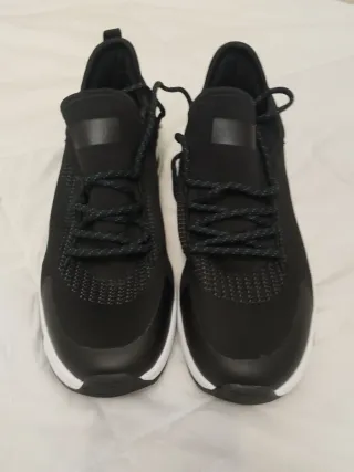Zapatillas deportivas de la marca Pull&Bear en talla 41. - Diseño moderno en color negro y gris. - Cierre con cordones. - Suela blanca con detalles en la entresuela.