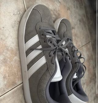 Zapatillas deportivas Adidas en color gris, talla 42. - Diseño moderno y cómodo. - Logo de Adidas en la lengüeta y lateral. - Suela con amortiguación. -Muy comodas para correr o paseo -35 solo por hoy mañana 40