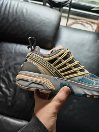 Zapatillas Salomon ACS PRO en tonos azul y gris. Un calzado con un diseño moderno y funcional. Originales y nuevas con etiquetas con factura original de Salomón. - Parte superior de malla transpirable. - Sistema de lazada rápida. - Suela de goma para mayor tracción.