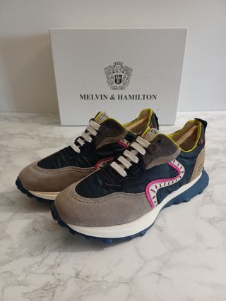 Melvin & Hamilton Richmond 8, zapatillas talla 41(42EU) plantilla 27.7cm, piel lona Azul marino-Gris. Tallaje grande talla 42 europea