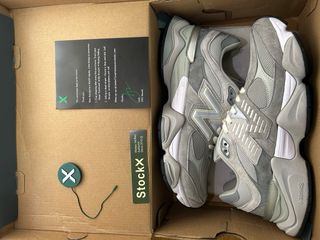 Zapatillas New Balance 9060 en excelente estado. - Diseño moderno en tonos grises y blancos. - Detalle del logo 'N' en el lateral. - Suela con patrón de tracción. - Modelo 9060.