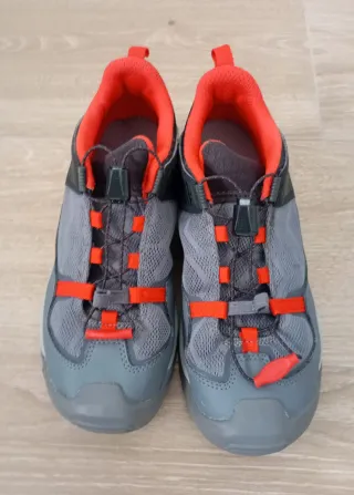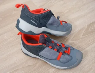 Zapatillas deportivas unisex de la marca Quechua. N° 36 Diseño moderno en tonos grises con detalles en rojo. Cierre con cordones elásticos y tanca para un ajuste rápido. Suela de goma para mayor agarre. Están como nuevas, se le han quedado pequeñas. (NO SE HACEN ENVÍOS)