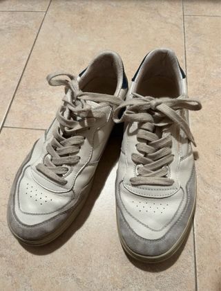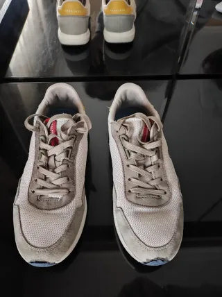 Zapatillas deportivas Mustang en tonos beige y gris. Están en buen estado, con poco uso. - Diseño casual y cómodo. - Ideales para el día a día. - Suela de goma.