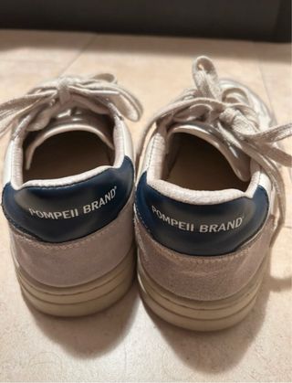Zapatillas de la marca Pompei en talla 40. Combinan tonos grises y blancos. - Diseño deportivo. - Cierre con cordones. - Detalle de perforaciones en la puntera.