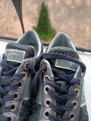 Zapatillas de la marca Cetti con un diseño moderno y detalles distintivos. - Combinación de colores marrón y negro. - Panel lateral con perforaciones. - Detalle de estrella gris en el lateral.