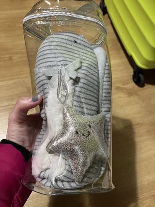SIN ESTRENAR, con todas las etiquetas. Zapatillas de casa marca WOMEN´ SECRET. Vienen en un estuche como se ve en las fotos, por lo que es ideal para regalar. Sin estrenar, conservan estuche original y todas las estiquetas. Además, traen una especie de llavero (en forma de estrella gris) que se puede usar de decoración, etc. Como son blandas, no son rígidas, son amoldables y elásticas, por lo que se pueden usar para distintos tamaños de pie, por eso no tienen un número concreto, sino que son la talla M.
