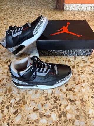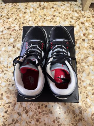 Zapatillas Air Jordan 3 Retro OG en color negro y gris. Un clásico del baloncesto. Con su caja original. - Diseño icónico con detalles en gris. - Cordones negros y ojales rojos.