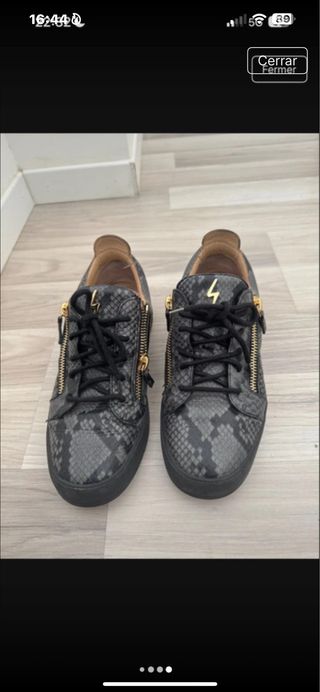 Zapatillas de diseño con un acabado que imita piel de serpiente. - Detalle de cremalleras laterales doradas. - Logo de rayo en la parte delantera. - Cordones negros.