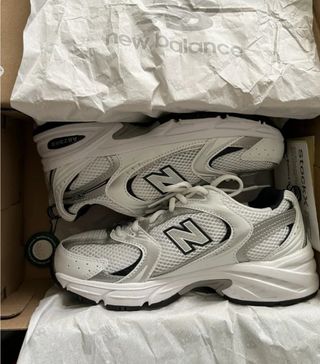 Zapatillas deportivas New Balance modelo 530. - Diseño retro con detalles en gris y blanco. - Tecnología ABZORB para mayor amortiguación. - Parte superior de malla transpirable.
