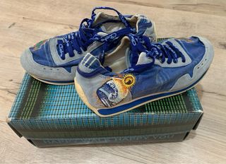 Zapatillas de la marca Custo Barcelona con un diseño llamativo. - Combinación de colores azul y gris. - Cordones con el logo de la marca. - Detalle de bordado en la parte delantera y trasera.