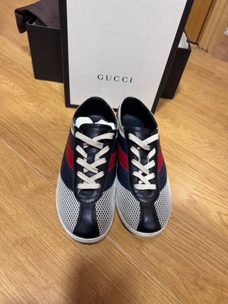 Zapatillas Gucci originales, usadas solo una vez, en estado impecable. Sin desgaste. Incluyen: ✔️ Cordones de recambio ✔️ Bolsita individual original para cada zapatilla ✔️ Plantillas nuevas (no usadas) Usadas literalmente una única vez. Precio negociable. Envío o entrega en mano.