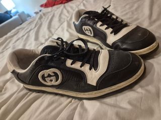 Zapatillas de la marca Gucci en color negro. Presentan un diseño deportivo y elegante. - Detalle de franjas laterales. - Cierre con cordones. - Materiales de calidad. tiene un poco desgastado las suelas que se ve en la foto, pero están bien y no hay rotos ni nada raro. muy cómodas y bonitas, las vendo porque no me las uso.