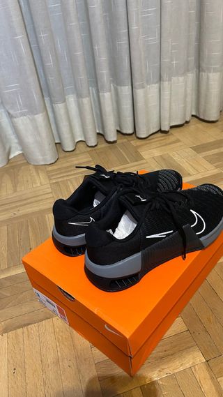 Zapatillas deportivas Nike Metcon 9 Sn52 en color negro originales sin ningún uso. Completamente nuevas y originales, con caja original y embalaje original. Talla 40.5. Precio original: 129.99£ - Diseño moderno y funcional para gimnasio/crossfit/halterofilia. - Logo de Nike en el lateral. - Cordones negros. - Suela de goma.