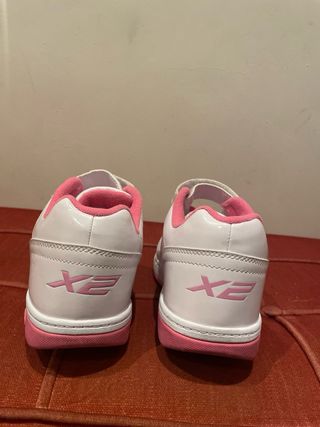 Zapatillas deportivas con ruedas, ideales para deslizarse. - Diseño en color blanco con detalles rosas. - Cierre con cordones para un ajuste seguro. - Suela de goma. - Logo de la marca en la lengüeta y el lateral.