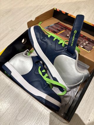 Zapatillas de la marca Heelys en talla 40.5. IMPECABLES UNA SOLA PUESTA - Combinación de colores azul y plateado. - Cierre con cordones. - Detalle de logo en la lengüeta.