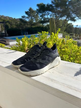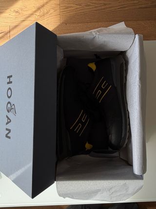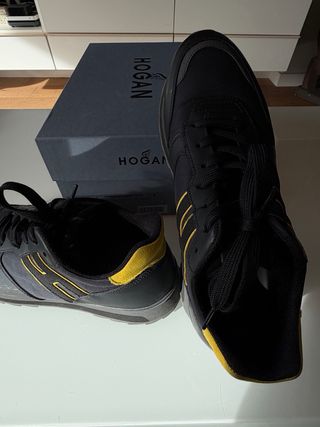 Zapatillas Hogan en excelente estado. - Diseño en color negro con detalles amarillos . - Talla 43 (equivalente a talla 9).