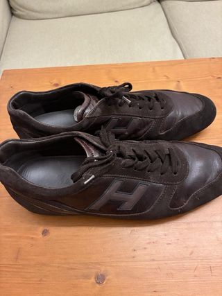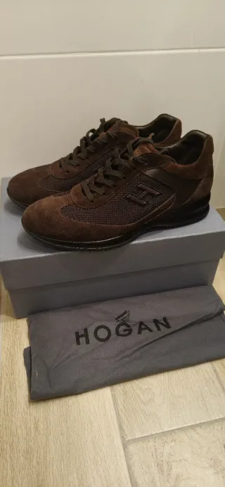Zapatillas de la marca Hogan en color marrón. Talla 9 UK (43 EU). Apenas llevadas dos veces. Excelente estado (ver fotos). Super elegantes y sport casual a la vez - Material exterior de ante y tejido. - Detalle del logo de Hogan en los laterales y talon. - Suela de goma. - Incluye bolsa guardapolvo.
