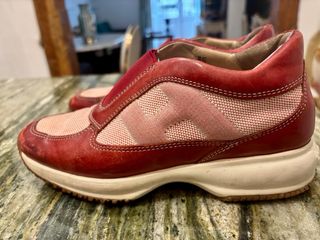 Zapatillas de piel en color rojo y blanco. - Marca Hogan. - Material exterior de piel. - Detalle de tejido en los laterales. Han sido usadas en el año 2021, y ya nada mas. En el armario han estado. Piel muy buena. Tiene algún signo de desgaste pero por este precio es una ganga. #hogan