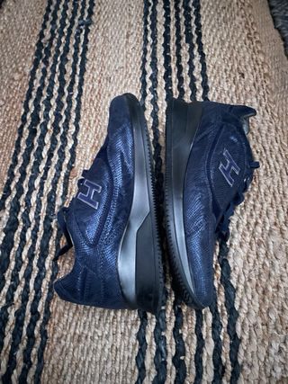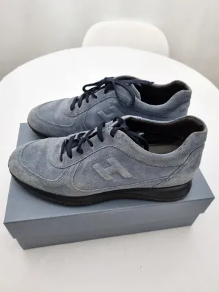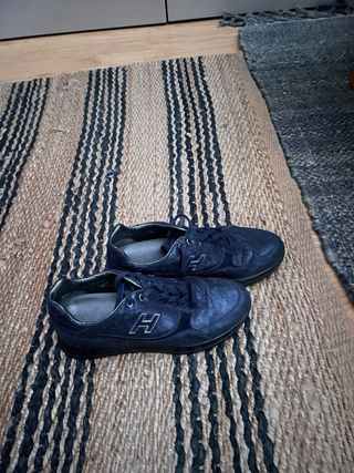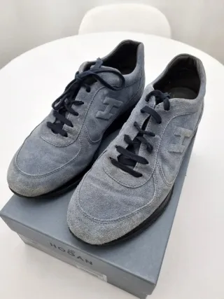 Zapatillas deportivas Hogan con un diseño moderno y cómodo. - Combinación de colores azul y gris. - Detalle del logo 'H' en contraste. - En perfecto estado. - Usadas 3 veces. - Talla grande para ser un 5 1/2. Estado 9.5/10