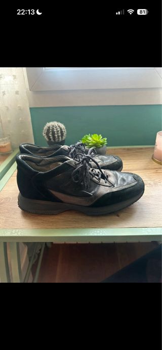 Zapatillas Hogan Mujer Talla 36 Negras y Plateadas