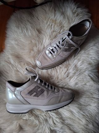 Tenis Hogan Mujer Talla 35 Plata y Negro