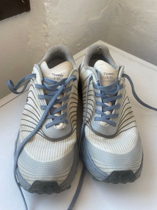 Buscando nuevo hogar para mi Nnormal Tormir 2-01. Está en excelentes condiciones. Lo único es que tiene desgaste en el talón. Aunque no tienen muchos km. En mi Strava solo corrí 150km. Tienen muchísimo más, al embarazarme mi pie se puso muy ancho, y entonces no me va muy bien! Talla es 38.2/3- pero calza como un 38.