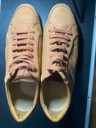 Zapatillas BOSS Hugo Boss originales, estilo casual / smart casual, fabricadas en piel auténtica con acabado perforado. 🔹 Talla: EU 45 🔹 Color: Camel / Marrón claro 🔹 Upper: Piel 🔹 Suela: goma antideslizante 🔹 Modelo cómodo y elegante para uso diario 📌 Estado: usadas, con signos visibles de uso y desgaste interior en el talón (ver fotos). 📌 100% originales (incluye etiqueta interior). 📦 Se envían bien protegidas. 🚭 Hogar sin humo. Precio ajustado según estado. Cualquier duda, escríbeme 😊