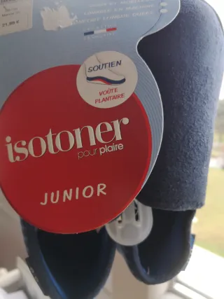 Zapatillas de casa de la marca Isotoner para niños, talla 35. Son nuevas a estrenar y vienen con su etiqueta. - Diseño con soporte para el arco del pie. - Fabricación francesa. - Lavables en lavadora. - Confort duradero.