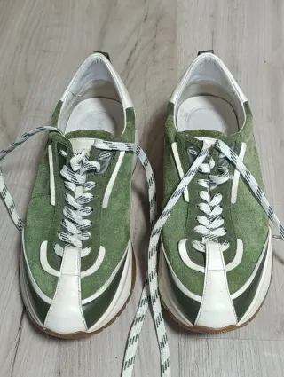 Zapatillas de la marca Jimmy Choo en una combinación de verde y blanco.talla 40.5 buena también para 41 muy poco uso - Diseño deportivo. - Cordones a contraste.