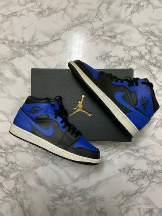 Zapatillas Nike Jordan 1 Mid en color negro y azul. 📏Talla 44.5 UE/10.5 US 🔝En perfecto estado como nuevas, tienen una sola puesta ✅Condición: 9,9/10 🛒Fueron compradas el día de lanzamiento 19/2/2021 en la app de Nike. Tengo la factura de compra si quieres que te la mande con el pedido. 👟Modelo: 554724-077 🏀Caja original con el papel de Jordan 23 y el logo dorado 🚚Se envían con las dos cajas de Nike (la de las zapatillas y la marrón de cartón) y otra para protegerlas bien y que no se dañen durante el envío.