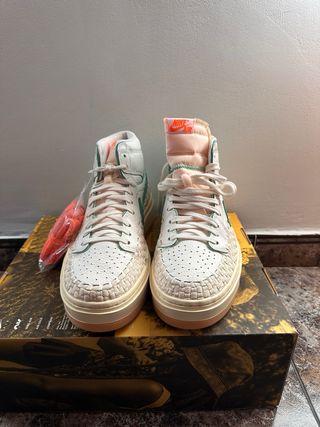 Nuevas !! Las estrenas tú Zapatillas altas Jordan 1 Elevate High en color titanium y blanco. Un diseño moderno y cómodo. - Plataforma elevada. - Cierre de cordones. Adjunto ticket de compra en en anuncio