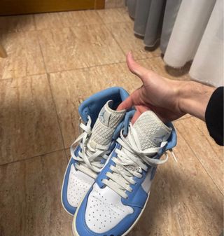Zapatillas de caña alta con un diseño moderno y deportivo. - Combinación de colores azul y gris. - Detalle de logo Air Jordan en el lateral. - Cordones blancos. Estan usadas pero sus condiciones son buenas, por eso el precio.