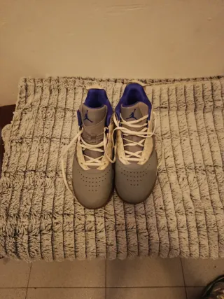 Zapatillas Jordan nuevas, nunca usadas. Se venden sin la caja original. - Diseño moderno con detalles en morado y blanco. - Suela con detalles en amarillo y negro.