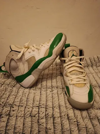 Zapatillas Jordan. talle 36,5 en color verde menta con detalles en gris claro 🤍💚 Modelo de estilo urbano, con combinación de materiales: parte superior lisa tipo cuero sintético y refuerzo delantero en textura gamuzada. Suela blanca con cámara de aire visible que aporta comodidad y un look moderno. Cierre con cordones al tono. Están nuevas, ideales para uso diario, looks casuales o streetwear. Súper versátiles y fáciles de combinar con jeans, joggers o vestidos deportivos. ✨ Talle: 36,5 ✨ Color: Verde menta / gris ✨ Cómodas y livianas Se entregan con su caja original. ¡Listas para estrenar!