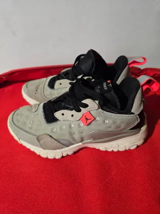 Zapatillas Jordan Delta 2 en tonos grises con detalles en rojo. - Diseño moderno y deportivo. - Combinación de materiales en el exterior. - Cierre con cordones negros. - Tiradores en el talón para facilitar su colocación. En perfecto estado. Palabras clave: mtb, race face, fox, mondraker, cannodale, moterra, orbea, pioneer, kenwood, llantas, cubiertas, pedales, potencia, tija telescópica, magura, vyron, Bluetooth, sram code r, hope tech v4, armario, arcón, canapé, mesitas, cabecero, sillín, ican sn04, wren, bh, torrot, mobylette, bmx, california, monty, connor, derbi, rabasa, fat bike, bluto, zeb, RockShox, ohlins, Scalextric, orde