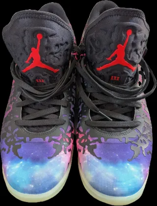 Zapatillas Air Jordan Zion 3 con un diseño Galaxy que evoca el espacio. - Parte superior con estampado galáctico. - Detalles en rojo. - Suela con acabado translúcido. Zapatos Nuevos !!!